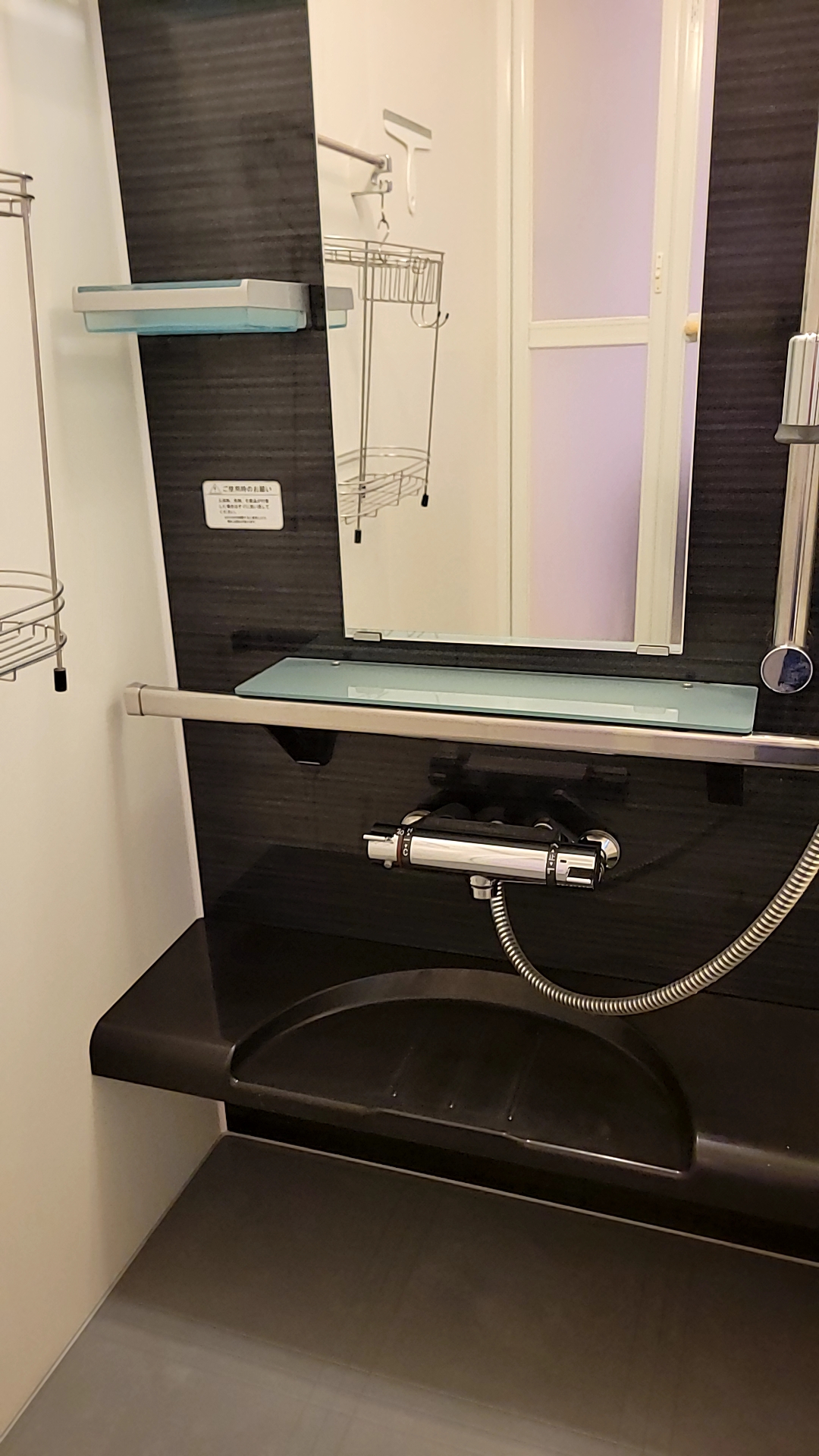 ダーク系のアクセントパネルは浴室が締まってカッコいいのですが、水垢や石鹼カスが目立ってしまいますのでお手入れの難易度は高くなります。